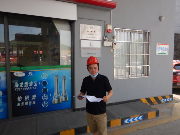 中國石化銷售股份有限公司浙江杭州富陽海光加油站(以下簡稱“海光加油站”)是中國石化銷售股份有限公司浙江杭州富陽石油支公司下屬加油站,成立于2001年1月21日,位于浙江省杭州市富陽區(qū)新登鎮(zhèn)雙塔村,主要經(jīng)營汽油、柴油的零售業(yè)務(不涉及散裝汽油和自助加油),法人代表盛丹峰,統(tǒng)一社會信用代碼為91330183793694849L,該站現(xiàn)有員工2人,其中安全管理人員1人。 中國石化銷售股份有限公司浙江杭州富陽海光加油站持有浙江省商務廳核發(fā)的成品油零售經(jīng)營批準證書(油零售證書第31140007號),持有原杭州市安全生產(chǎn)監(jiān)督管理局核發(fā)的危險化學品經(jīng)營許可證,登記編號:浙杭安經(jīng)字[2018]10005168,有效期:2018年9月27日至2021年9月26日,許可經(jīng)營范圍:帶儲存經(jīng)營成品油:汽油;不帶儲存經(jīng)營(店面零售)成品油:煤油。 加油站安裝有汽油卸油和加油油氣回收系統(tǒng)。加油區(qū)設置加油罩棚,罩棚頂部為輕鋼結構。罩棚下設置2臺雙油品雙槍和2臺雙油品四槍潛油泵式加油機(汽油加油槍帶油氣回收);埋地油罐區(qū)設有4只30 m³埋地臥式SF雙層油罐(非車道罐),其中30m³埋地臥式汽油罐2只,30m³埋地臥式柴油罐2只,油罐總容積折算為90m³(柴油罐折半計入),根據(jù)《汽車加油加氣站設計與施工規(guī)范》GB50156-2012(2014年版)的相關規(guī)定,該加油站為三級加油站。