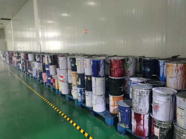企業(yè)的生產(chǎn)工藝主要為印刷工藝,企業(yè)印刷工藝涉及使用丁酮、乙酸丁酯、異丙醇、乙酸丙酯、乙酸乙酯、OPI-PP系列油墨共6種危險(xiǎn)化學(xué)品,屬于危險(xiǎn)化學(xué)品使用單位。企業(yè)危險(xiǎn)化學(xué)品分區(qū)域儲(chǔ)存,分別為危險(xiǎn)化學(xué)品專用油墨倉(cāng)庫(kù)、埋地儲(chǔ)罐區(qū)。其中丁酮、乙酸丁酯、OPI-PP系列油墨儲(chǔ)存在油墨倉(cāng)庫(kù)內(nèi),油墨倉(cāng)庫(kù)內(nèi)危險(xiǎn)化學(xué)品使用場(chǎng)內(nèi)機(jī)動(dòng)車輛轉(zhuǎn)運(yùn)至印刷車間。乙酸丙酯、乙酸乙酯、異丙醇使用埋地儲(chǔ)罐儲(chǔ)存。埋地儲(chǔ)罐內(nèi)危險(xiǎn)化學(xué)品通過(guò)隔膜泵經(jīng)管道運(yùn)輸?shù)秸{(diào)墨間緩存罐內(nèi)待用。