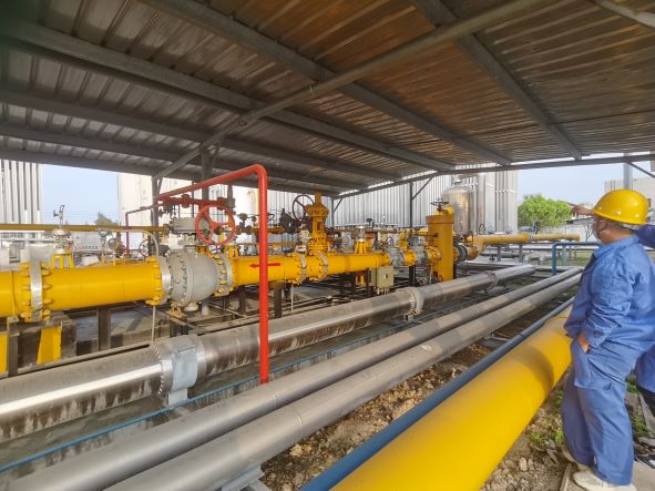 本次擴容改造工程包括新增2個150m3儲罐,儲罐規(guī)模達到900m3(6個150m3),結(jié)合場地的現(xiàn)有布局,在儲罐區(qū)域北側(cè)增設(shè)6臺4000Nm3/h的主氣化器,6臺主氣化器按照1橫排進行布置,3臺為一組,兩組互為備用,單組氣化量為12000Nm3/h。屆時,該站的高峰小時氣化量將達到24000Nm3/h。由于儲罐規(guī)模、氣化量均有增加,配套的熱水系統(tǒng)、儲罐增壓器均需要進行調(diào)整,增設(shè)兩臺1000Nm3/h的儲罐增壓器,2臺35m3/h的熱水泵,2臺功率為0.5MW的熱水鍋爐,替換原來2臺熱水泵、熱水爐,同時增加相應的工藝管道。已建水浴式復熱器天然氣處理量有24000Nm3/h,已建調(diào)壓計量加臭撬的規(guī)模有24000Nm3/h,能夠滿足供氣要求。
