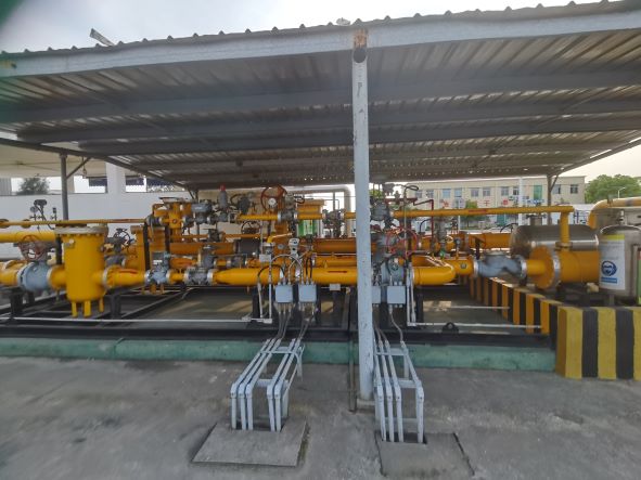 臺州華潤燃氣有限公司所屬海濱液化天然氣(LNG)儲配站位于臺州市路橋區(qū)金清鎮(zhèn)濱海工業(yè)區(qū)十條河以西,由公司運行管理部進行管理。儲配站2013年8月建成,2013年9月投入試運行,站區(qū)原有4個150m³LNG儲罐,總存儲量為250噸,8臺氣化量3000Nm³/h的空溫式氣化器,設(shè)計小時最大供氣量為12000Nm³/h。