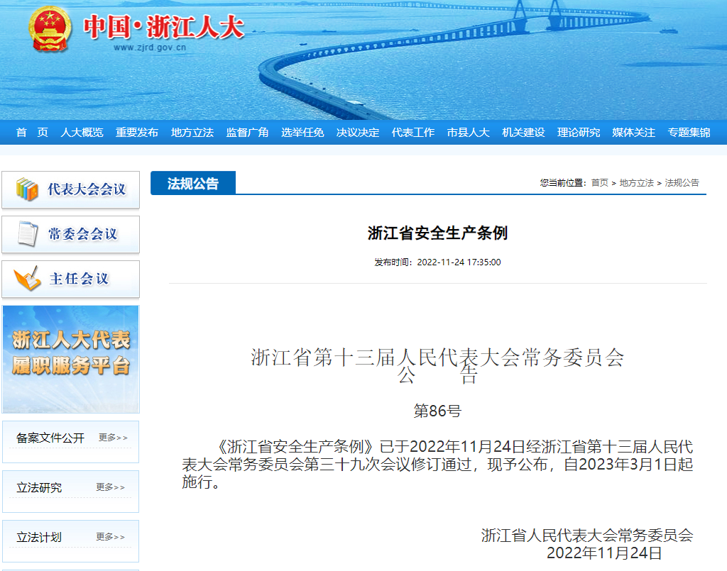 《浙江省安全生產條例》正式發布